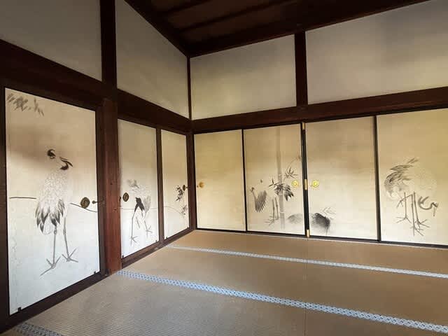 美しい襖絵です。鶴の間。非常に贅沢な造りでした。