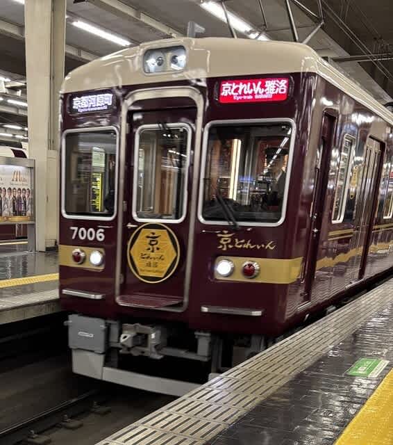 しかも阪急電車が入って来るのを見つめながら、です。