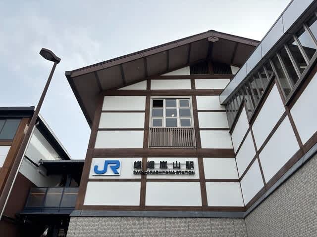 相変わらず雪がチラつく中、JR嵯峨嵐山駅外観です。
