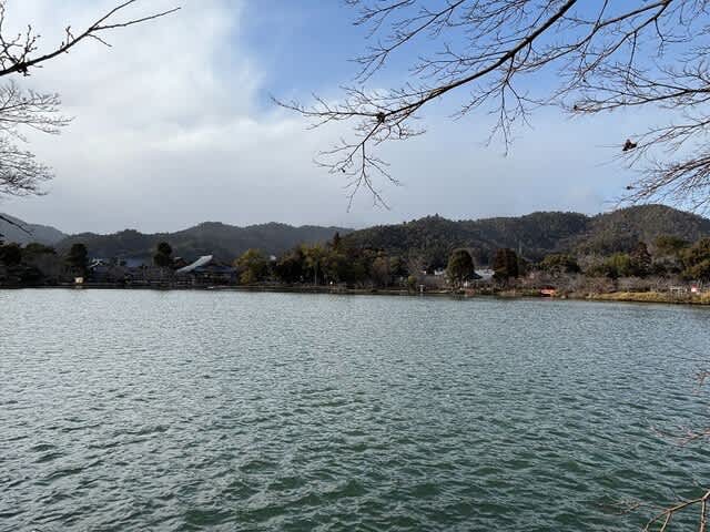 約20分掛けて大沢池を一周しました。お寺に戻ります。