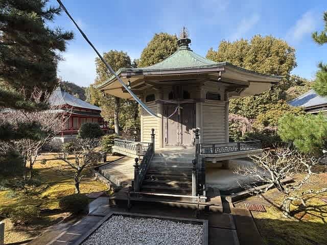 大正年間に出来た建物で、法隆寺夢殿を模しているんだとかどす。