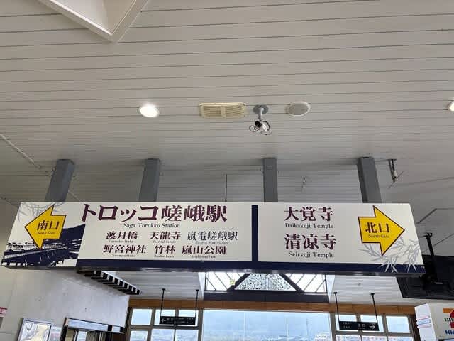 左に行けばトロッコ嵯峨駅だったり嵐山に行くことができます。