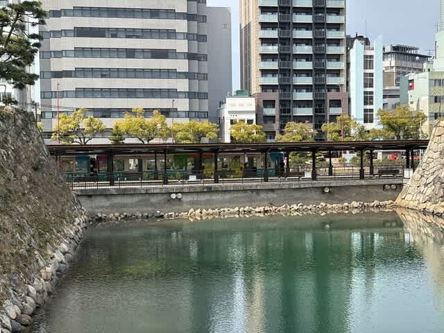 鞘橋を見下ろすと、向う側にことでんちゃんが停まっていました。