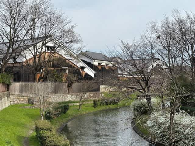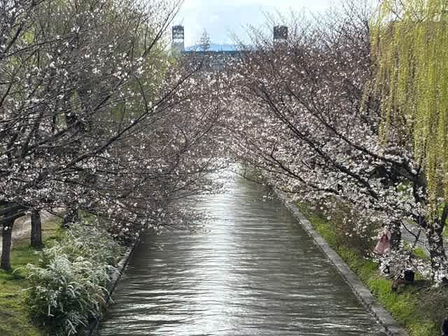 先ほどの川、大阪方面は桜が咲いていました。川沿いを散歩する人々は楽しそうでしたよ。