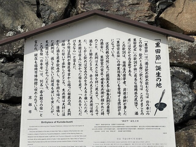 酒は飲め飲めの黒田節、広島か福岡が発祥の地と思っていましたが、何と伏見の福島家屋敷だったそうです。