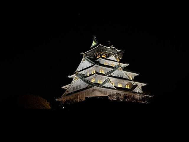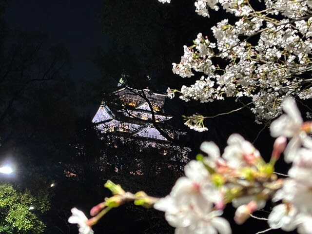 食べて飲んだ後、大阪城に行くことにしました。夜のお花見としゃれこみました。