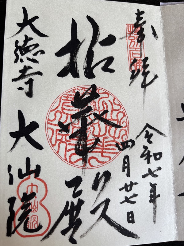 施無畏(せむい)と記してあります。何ごとにも恐れない力を与えることだそうですよ。総見院さんの御朱印をいただきました。
