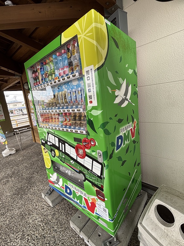 自販機もお目当ての新型車両DMVすだちヴァージョン。