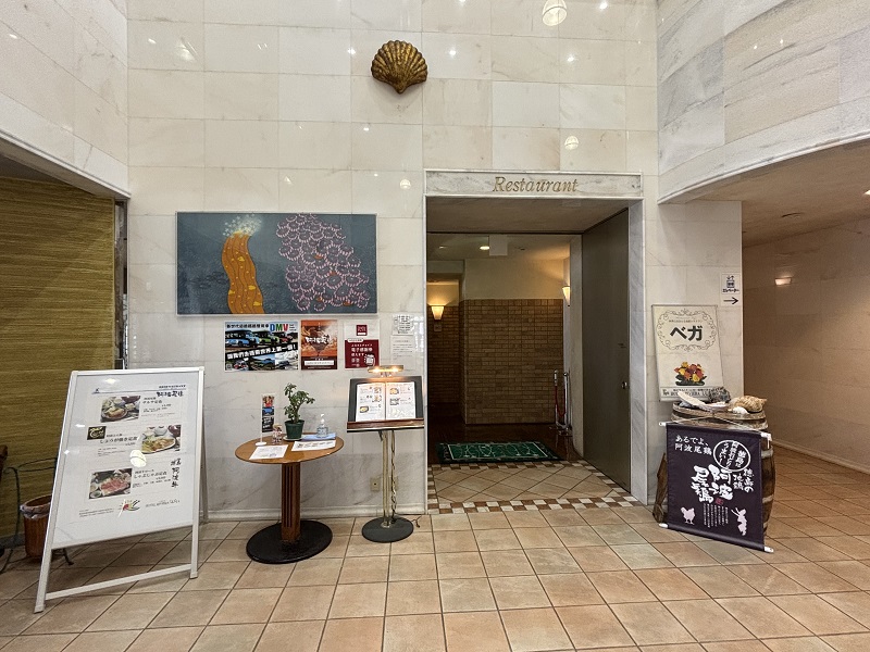 お昼を食べられるレストランと温泉は隣の建物にある様です。