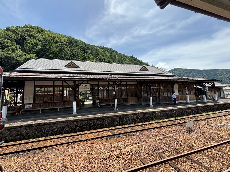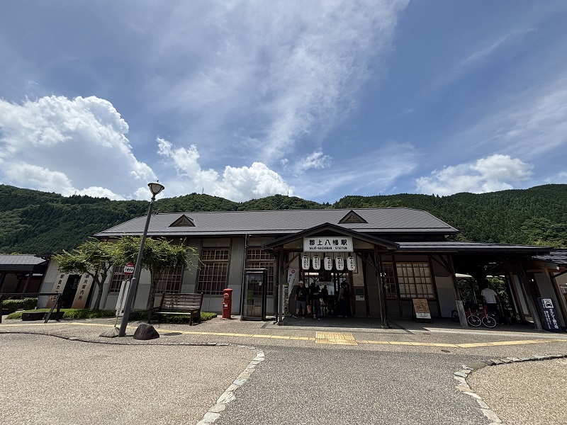 郡上八幡駅は緑の中。日差しが厳しいです。