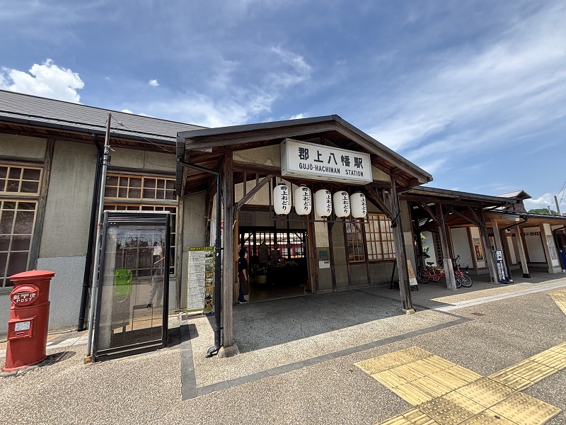 郡上踊りの提灯でもうお分かりですね、郡上八幡駅です。