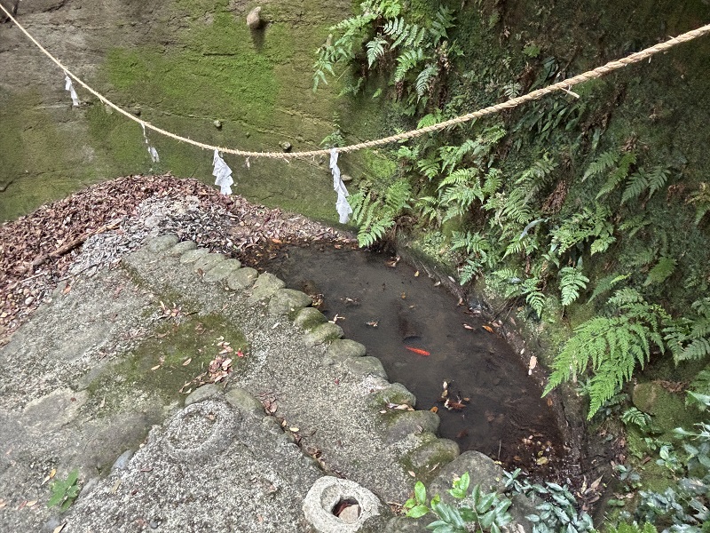 降りる途中、三日月井戸には金魚がいましたよ!!