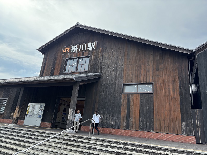山小屋風のロッジかヒュッテか、という感じの掛川駅。8時40分です。