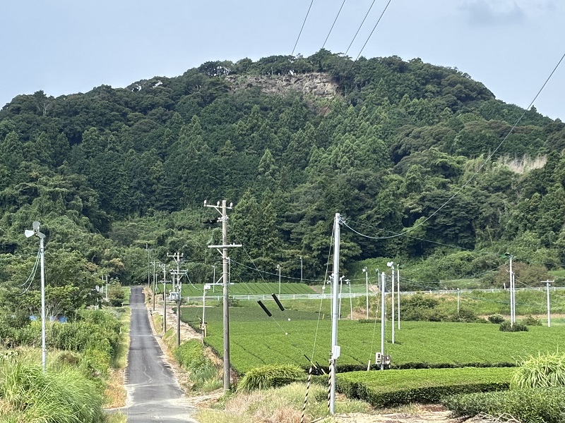 城址に向かうと山が見えました。恐らくあれが高天神城ですね。