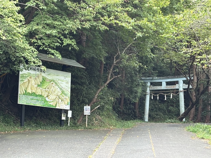 こちらは標準的な搦手門口、大きな鳥居があるのです。