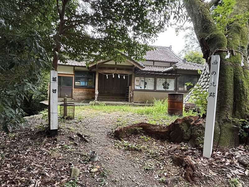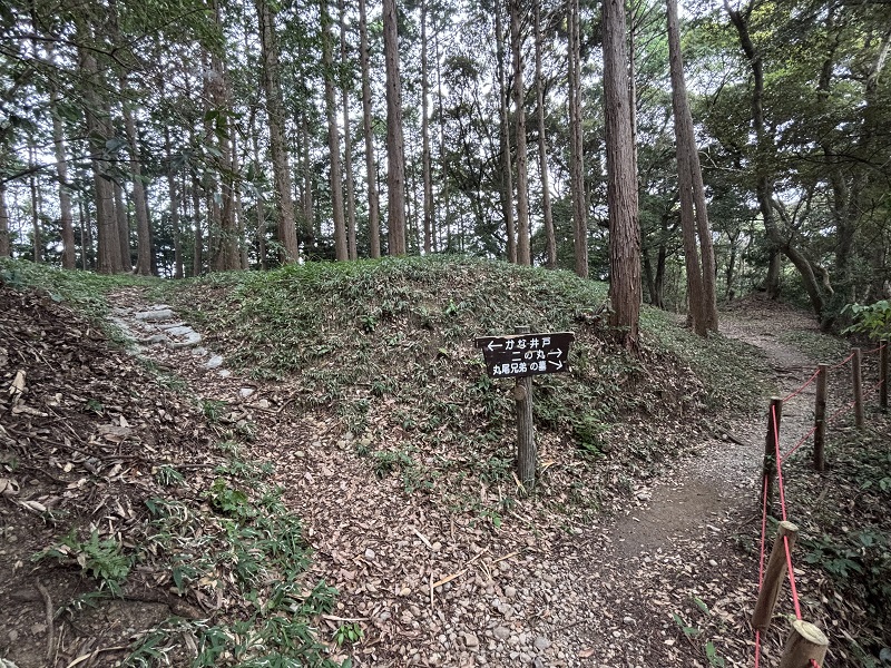 ようやく登ると西の丸跡とお家、そしてその脇には堀切が。
