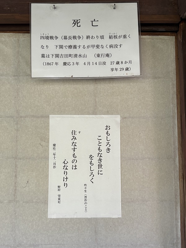 両隣は平野国臣、西郷隆盛です。3人とも非業の死を遂げています。高杉をそう思っても差し支えれば、ですが。
