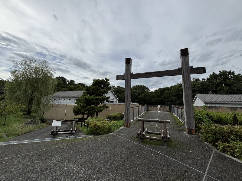 復元された四脚門。もっと近づいてみましょう。