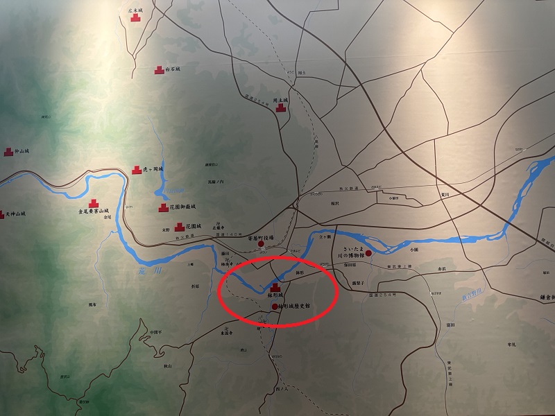 赤丸印が鉢形城の場所です。