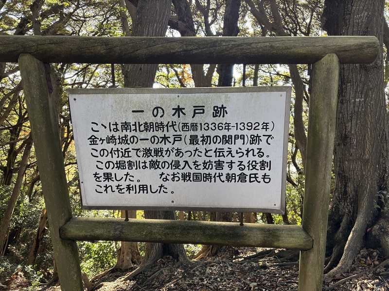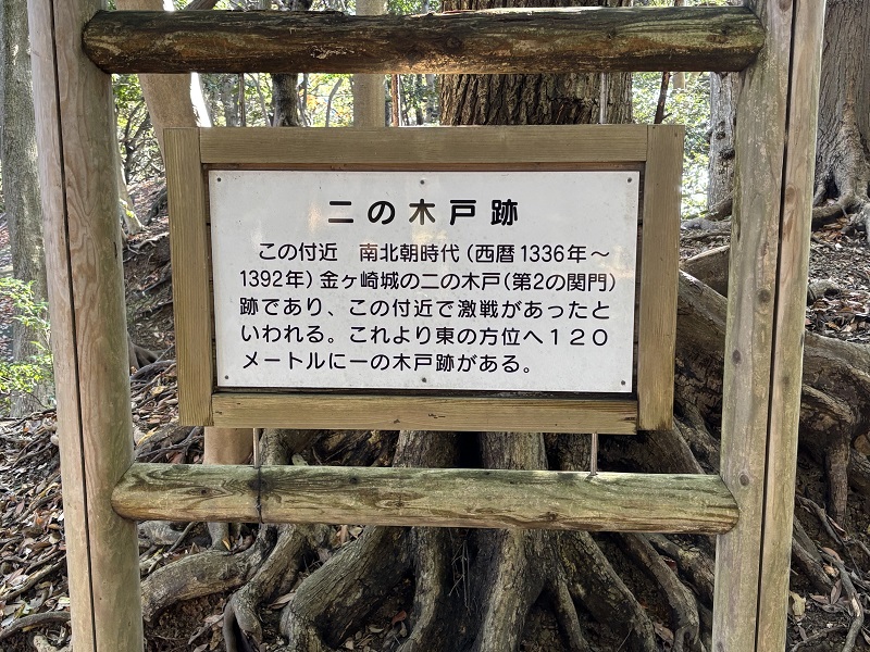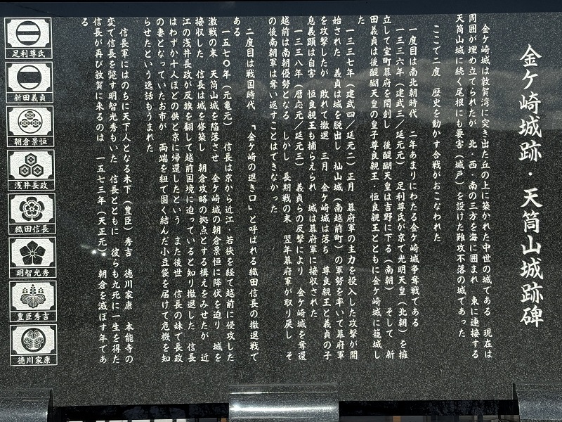 今日目指す金ヶ崎城と天筒山城の説明版です。