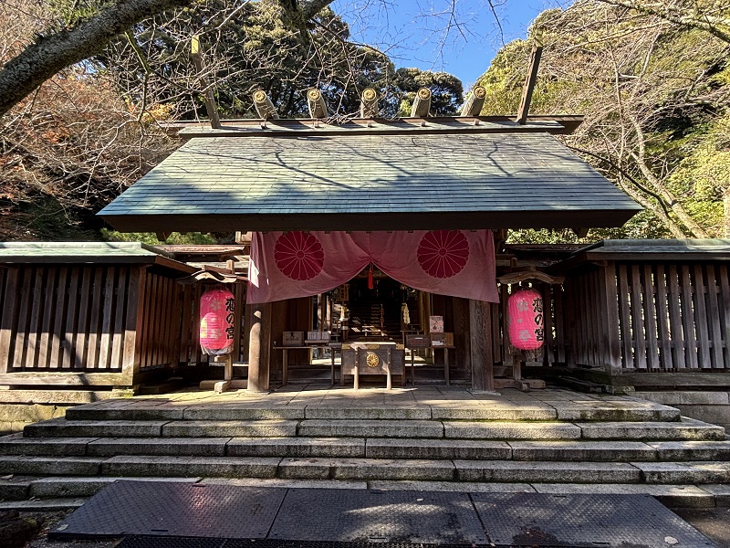あれ、悲劇の尊良親王を祀っているのに、何だかピンク色のお社ですね~