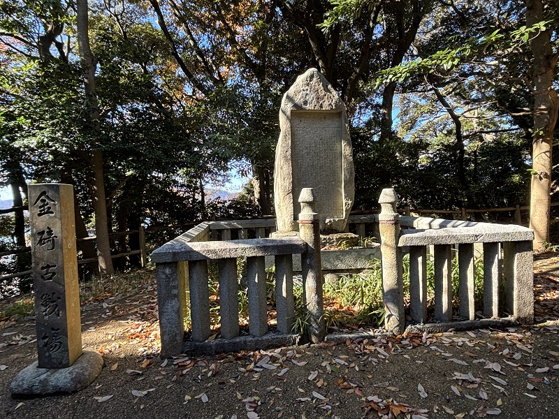 金ヶ崎古戦場の石碑。碑文は全く読めませんでした。